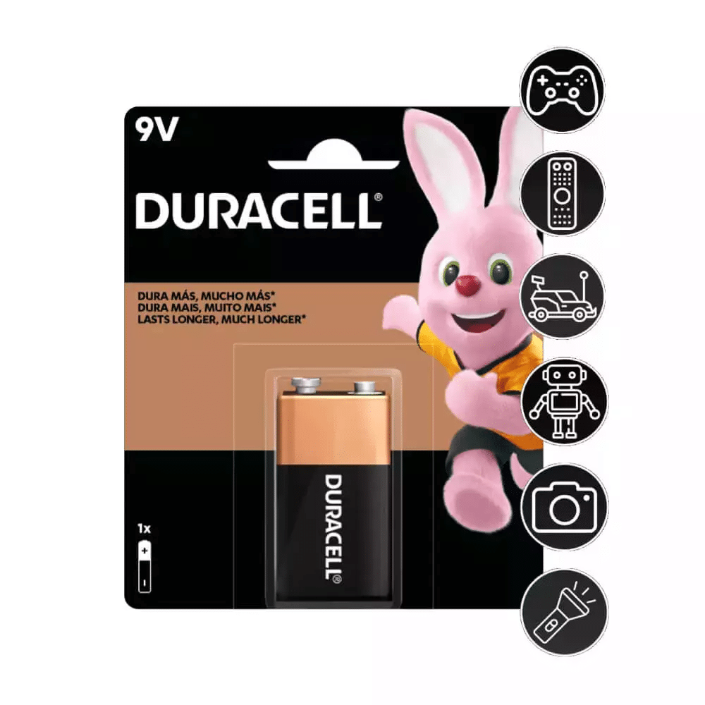 Quando se trata de pilhas confiáveis e de longa duração, Duracell é a melhor opção. Projetadas para fornecer aquela energia extra. As pilhas 9V proporcionam energia confiável aos aparelhos do dia a dia, como brinquedos, controles remotos, consoles de jogos portáteis, fechaduras eletrônicas, lanternas, etc. Além disso, a tecnologia de Duracell preserva a energia das Baterias 9V que ainda não foram usadas, por até 5 anos.