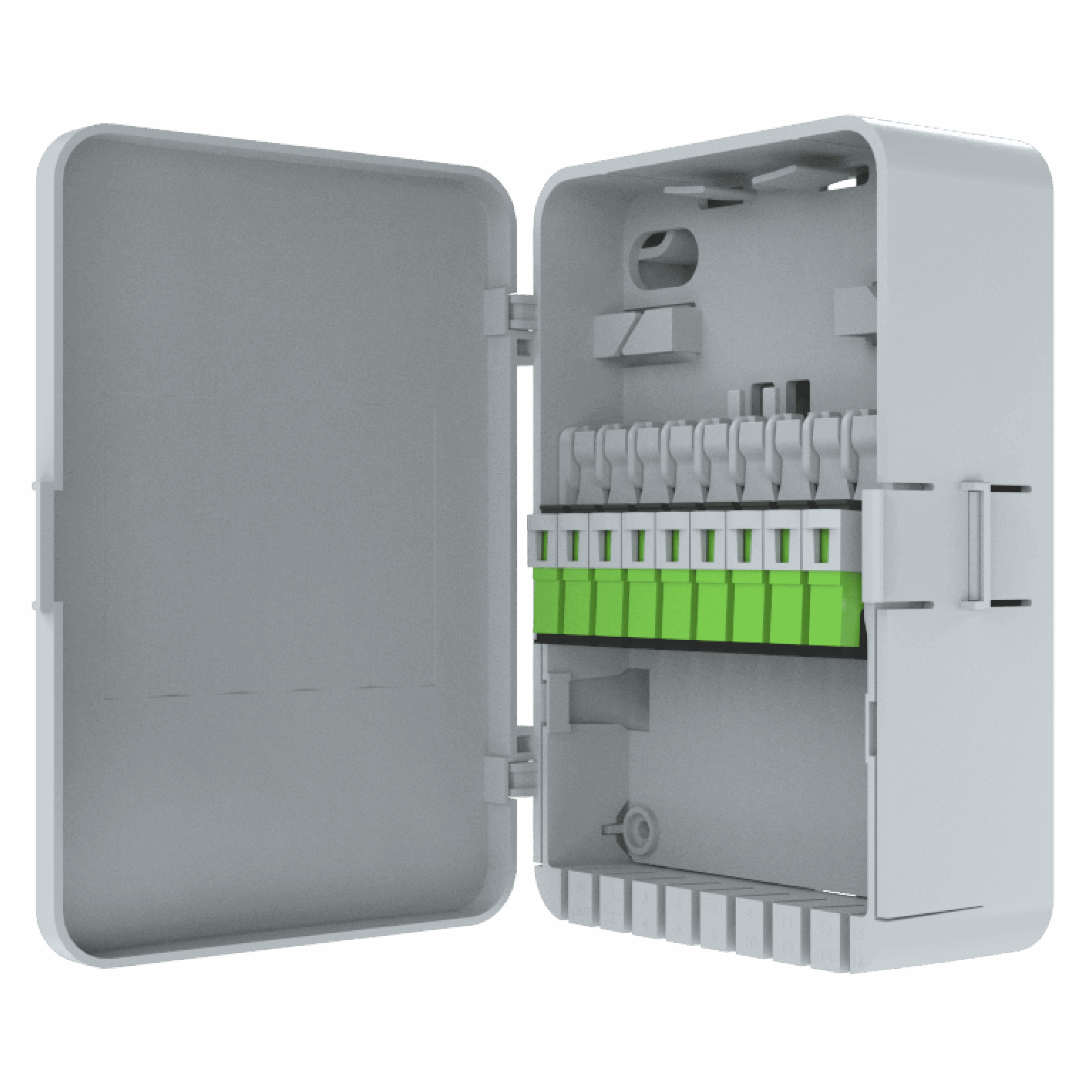 Produto desenvolvido e fabricado pela Fibracem para efetuar o atendimento de clientes na modalidade FTTA (Fiber To The Apartment – Fibra para o Apartamento).