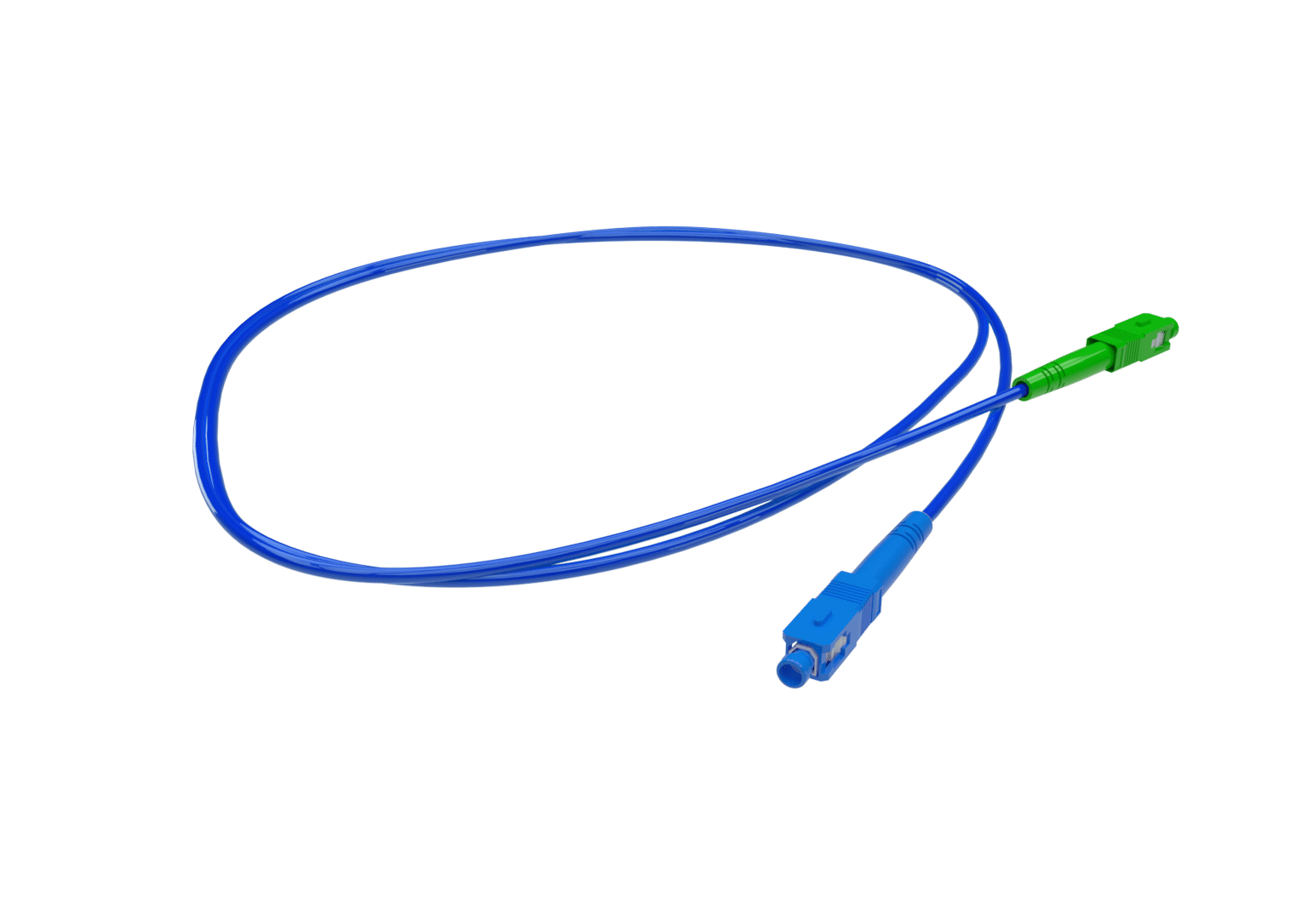 O cordão óptico SC/UPC-SC/APC 2M simplex de uma fibra óptica do tipo monomodo com conector SC de polimento UPC em uma ponta e SC de polimento APC em outra.
