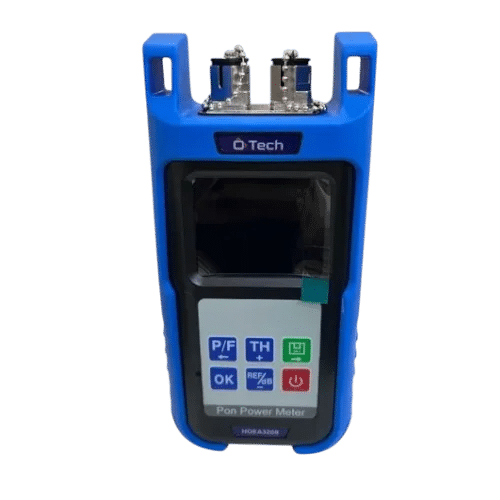 O PON Power Meter HOEA3208 da O-Tech é um dispositivo especializado para testar e manter redes ópticas passivas (PON), usado principalmente para medir a potência do sinal em fibras ópticas.